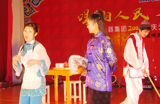 晚會(huì)在輕松愉快的音樂中拉開了序幕。主持人黃兆超、林樂丹分別介紹了各位領(lǐng)導(dǎo)和嘉賓。蒞臨現(xiàn)場的有柳市鎮(zhèn)總工會(huì)主席紹春微、長虹村黨支部副書記鄭銀余、溫州大學(xué)甌江學(xué)院副院長吳一琦以及人民電器集團(tuán)監(jiān)事長包巨文、進(jìn)出口公司總經(jīng)理葉向宇、儀器儀表公司董事長鄭緯宇等有關(guān)部門領(lǐng)導(dǎo)。