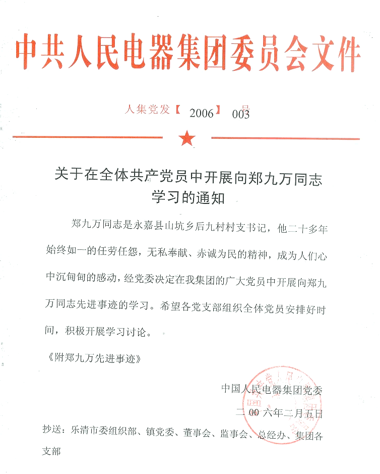 關(guān)于在全體共產(chǎn)黨員中開(kāi)展向鄭九萬(wàn)同志學(xué)習(xí)的通知